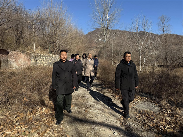 左:老兵事业发展网外联部部长刘航军 中:航空科普小镇暨低空经济产业项目负责人赵玉龙 右:苇店村驻村第一书记马红光 现场考察场地。