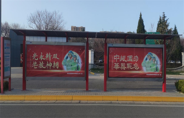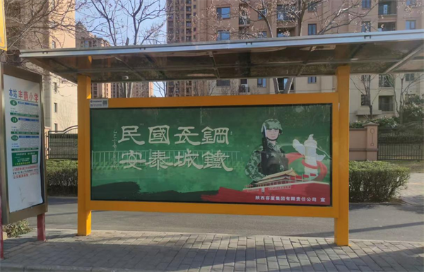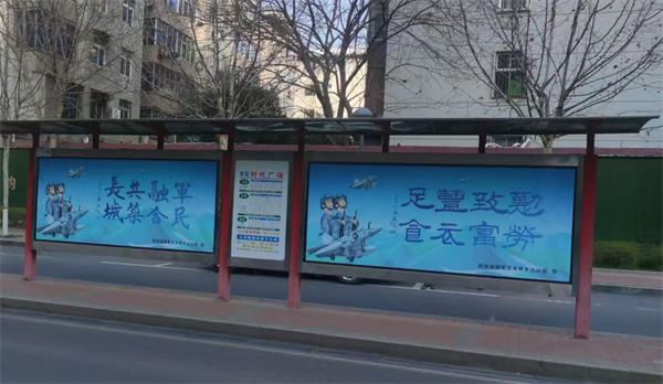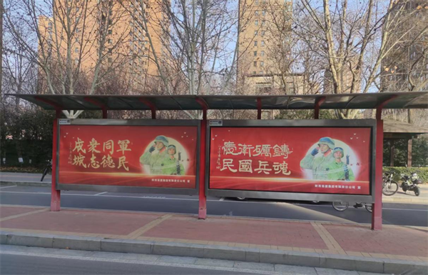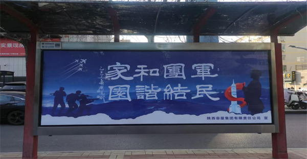 为进一步丰富公交候车亭双拥工作宣传专栏的表现形式,2025年4月,陕西容厦集团有限责任公司特邀军旅书法家刘建武为宣传专栏书写宣传标语。“钢铁长城 国泰民安”“军民团结 和谐家园”“双拥精神永放光芒”等一幅幅饱含深情与敬意的作品跃然宣传栏上,把传统文化与强军精神紧密融合,受到了广大人民人民群众喜爱,提高了大家对双拥工作的知晓率、支持率、参与率,增加了拥军爱属、拥政爱民的鱼水情。