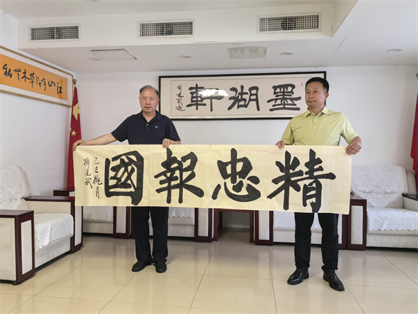 军旅书法家刘建武(左) 老兵事业发展网外联部部长刘航军(右)